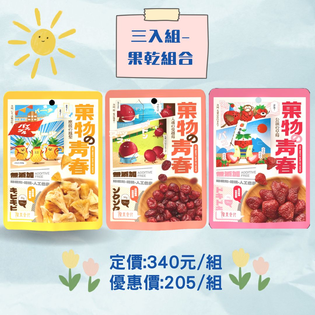 三入組:鳳梨乾、草莓乾、蔓越莓乾